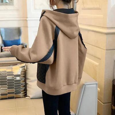 秋冬服韓国 裏起毛 パーカーレディース ファッション 大人 ナチュラル 体型カバー オ トップ
