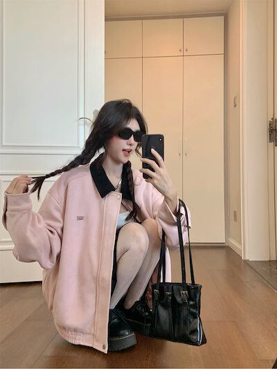 2024秋冬 長袖 かわいい 韓国 スタンドネック アウタートップス 羽織り合成レディースフェイクコーデカジュアルシルエットゆったりファッション系サイズ 色っぽ 女っぽきれいめ大丈フレンチトラック