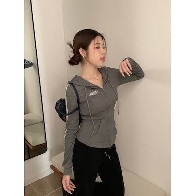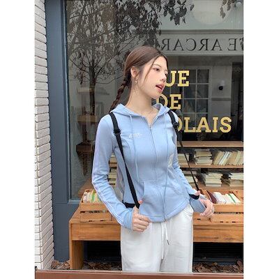2024 秋冬トップスかわいいパーカーフード付き韓国風長袖ゆったり細見え白黒おしゃれレトロチャッシルエット甘め大人っぽ韓国ダブルサイズファッション系ルーズレディースサイドお出かけ学生通学トラック羽織り
