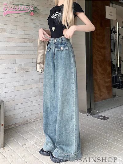 ボトムス レディース ハイウエスト ワイドレッグ ジーンズ デニム ワイドデニム バギーデニム ゆったり ルーズ カジュアル スタイルアップ 脚長 美脚 クール かっこいい 韓国