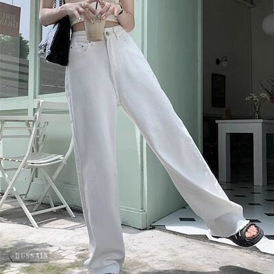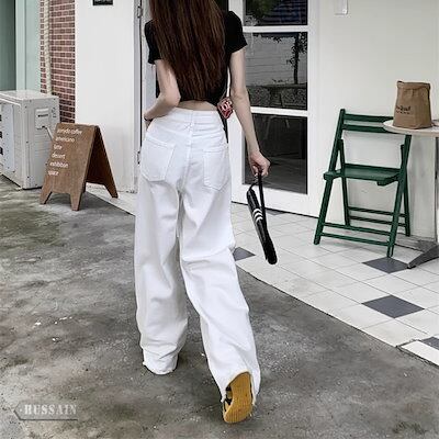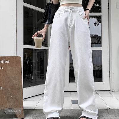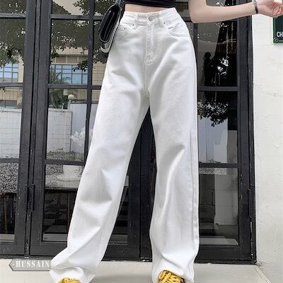 ボトムス パンツ デニム ロング レディース ストレート ワイドレッグ 夏 白 ホワイト ポケット おしゃれ お出かけ 休日 ハイウエスト 足長効果