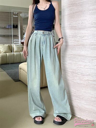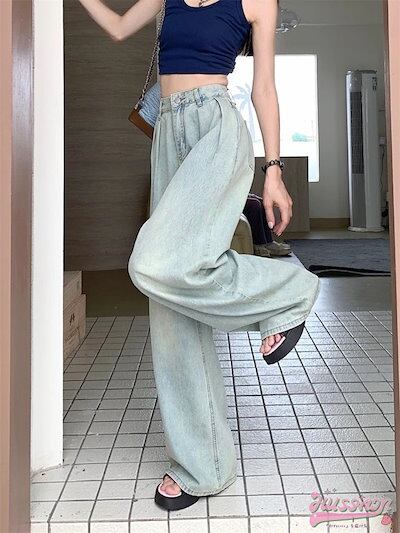 パンツ デニム ジーンズ ロング丈 モップパンツ ワイド ストレート ゆったり 秋 カジュアル ストリート 韓国ファッション レディース お出かけ