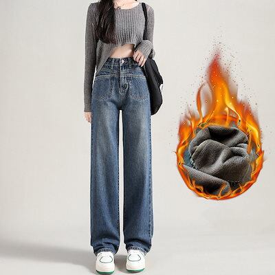 ワイドパンツ レディース ワイドデニム 裏起毛 デニムパンツ レディース 防寒 ジーンズ デニム パンツ 大きい オシャレ ジーパン 体型カバー