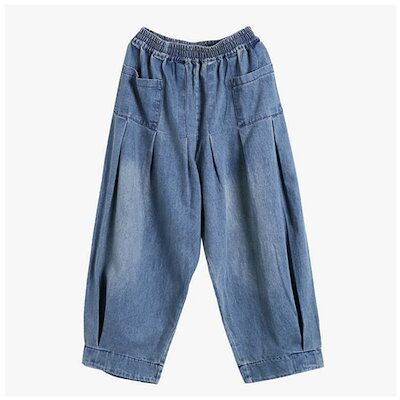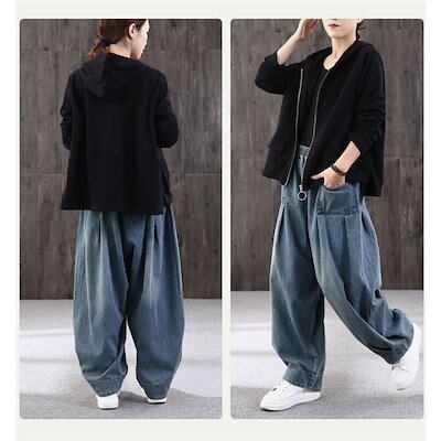 デニム ワイドパンツ レディース ボトムス ウエストゴム テーパードパンツ ジーンズ カジュアル 大きいサイズ 体型カバー ゆったり 着やせ 無地