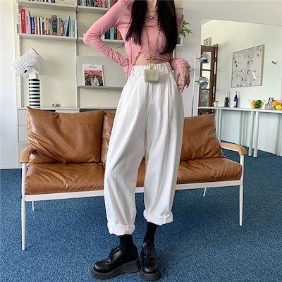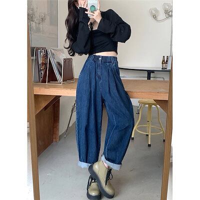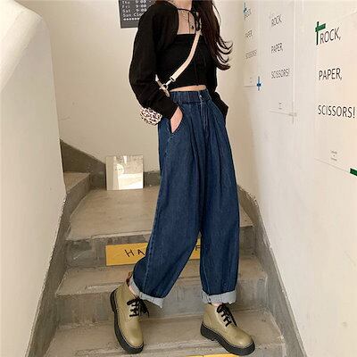 パンツ デニム ジーンズ レディース ズボン 春秋 ロング丈 ワイド バギーパンツ ボトムス ストレートパンツ テーパード ハイウエスト 体型カバー