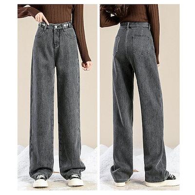 デニムパンツ レディース ワイドパンツ 裏起毛 裏ボア ジーンズ 厚手 ハイウエスト 秋冬 ジーパン 保温 防寒 暖かい ロングパンツ ゆったり 通勤
