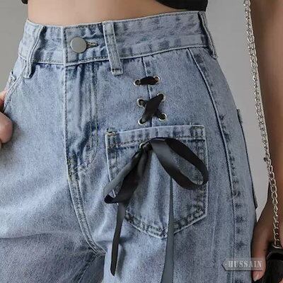 レディース カジュアルに レースアップ ワイドデニムパンツ デニムパンツ カジュアル 着回し ハイウエスト スタイルアップ 美脚見せ ボトムス
