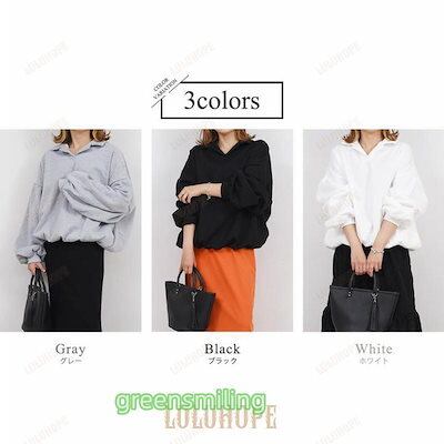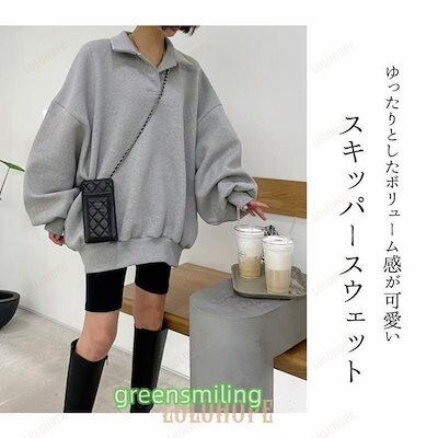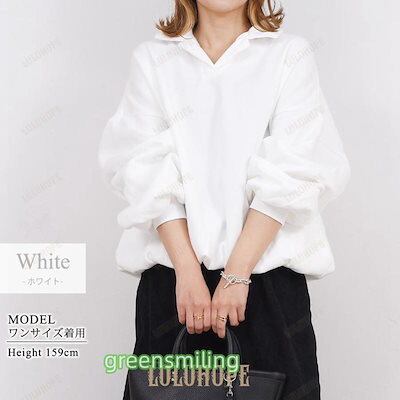 スウェット レディース 裏起毛 秋冬 長袖 トップス カットソー 黒 白 ゆったり スキッパーカラー 抜け感