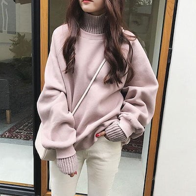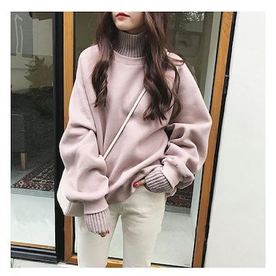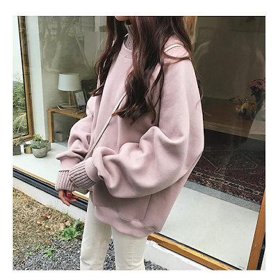 トレーナー タートルネック 重ね着風 微起毛 暖かい 異素材 切り替え リブ スウェット トップス レディース 体型カバー