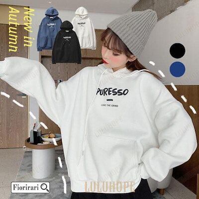 パーカー レディース 裏起毛 パーカー レディース ビッグパーカー トップス 長袖 袖ボリューム 韓国ファッション 秋冬 ロゴパーカー ビッグサイズ スウェット