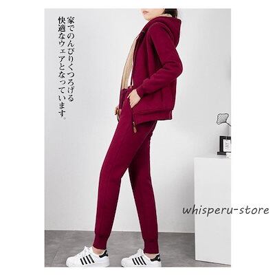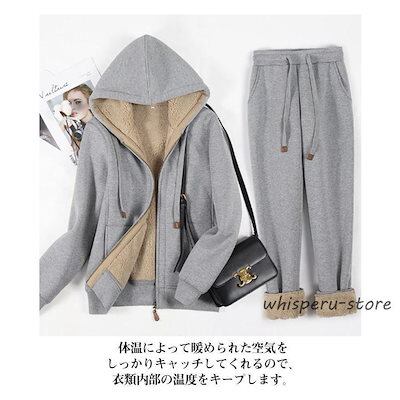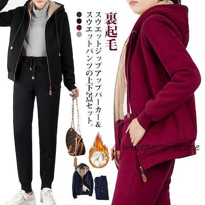 厚手 ジップアップ 2点セット 裏起毛 上下 保温 スウエット トップス フード付き レディース スエット スウエットパンツ 冬 裏ボア セットアップ