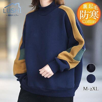セール トレーナー レディース 裏起毛 トップス ハイネック 長袖 配色切替 パーカー カジュアル ゆったり シンプル 保温 通勤通学 おしゃれ 学生