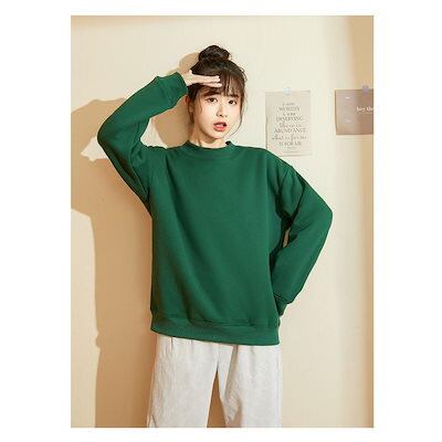 トレーナー レディース 裏起毛 ス クルーネック 長袖 無地 厚手 パーカー カジュアル ゆったり シンプル 保温 イベント ファション