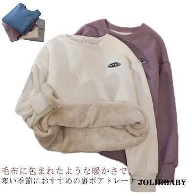 裏ボア トレーナー ボア 裏起毛 裏フリース スウェット パーカー レディース プルオーバー ルームウェア 部屋着 長袖 クルーネック ドルマンスリー