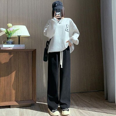 裏起毛 リブワイドパンツ ストレートパンツ ボトムス パンツ レディース ワイドパンツ リブパンツ ロング スウェット コーデュロイ 秋冬 暖かい 裏起毛パンツ 冬