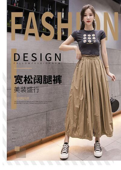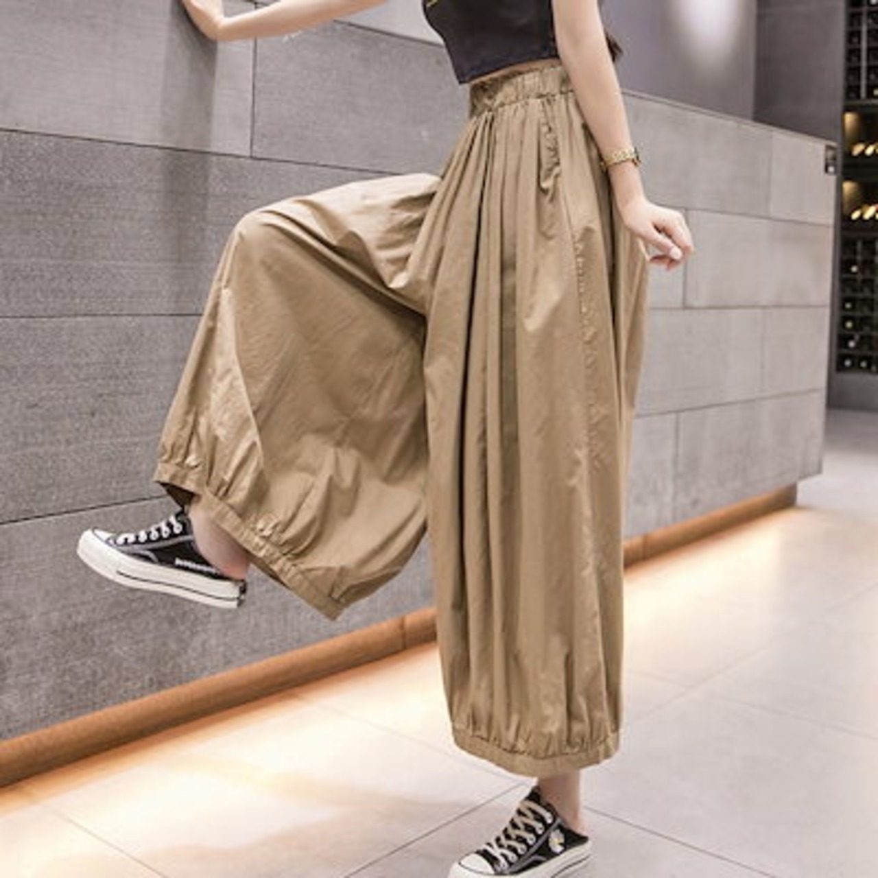 日本の作業着スタイルのランタンワイドレッグパンツレディースラージサイズルーズキュロットラージパンツ9パンツオールマッチワイドレッグカジュアルパンツ