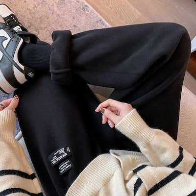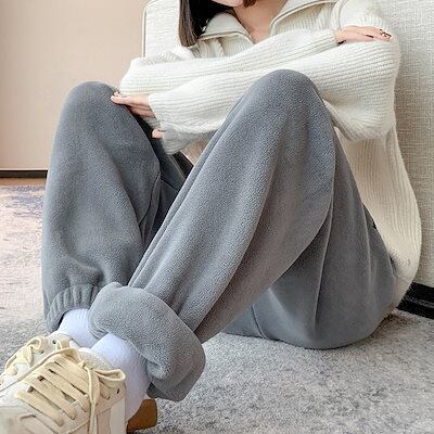 かっこいい!スラックスパンツ500g厚手 裏起毛 運動ズボン レディース ゆったり ドローストリングパンツ 秋 冬 ウォーム 両面ボア フリースコーデュロイズボン