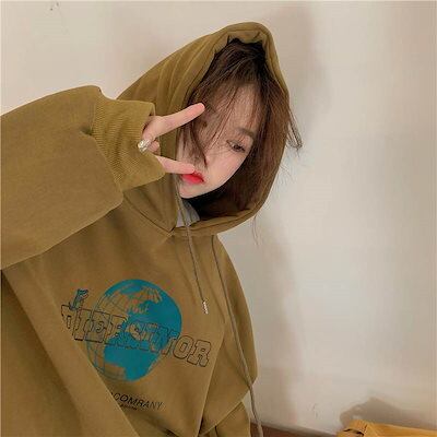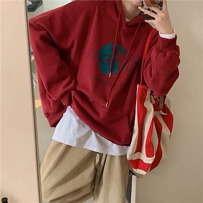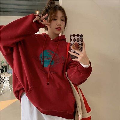 3色 トップス レディース トレーナー パーカー 茶 カーキー 赤 ワインレッド グレー 長袖 ロゴ 地球 アース 大人可愛い かっこいい おしゃれ カジュアル こなれ感 ゆったり インスタ映え 秋