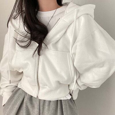 パーカー レディース ジップアップパーカー ジャケット 秋 春 スウエット フード付き パーカー コート ショート丈 コート トップス 大人 軽量 シンプル 無地 普段着 着回し力 着痩せ 体型カバ