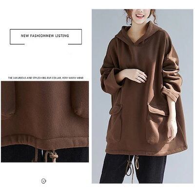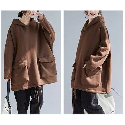 ロングパーカー パーカー フード付き 裏起毛 ポケット付き オーバー レディース サイドスリット 体型カバー アウター ゆったり 大きいサイズ