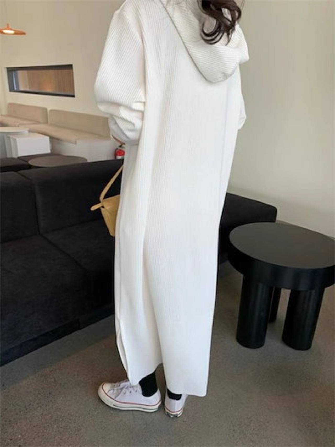 パーカーワンピース ロングパーカー ワンピース レディース 春 秋 冬 フード付き ロング ワンピース 長袖 ゆったり サイドスリット 大きいサイズ カジュアル シンプル 無地 おしゃれ 上品 着痩せ
