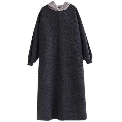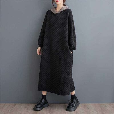 パーカー ワンピース キルティング ワンピース 秋 冬 レディース 長袖 中綿 ロングワンピース フード付き 無地 キルティング 秋冬 ワンピース ロング丈 ワンピ 厚手 プルオーバー 大きいサイ