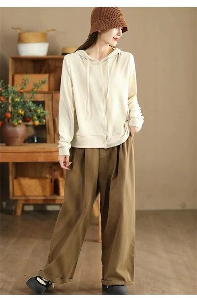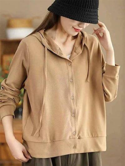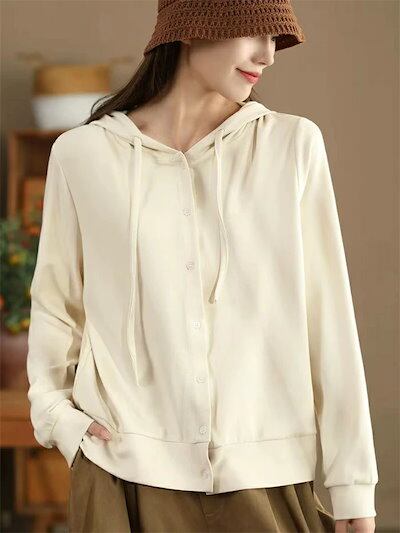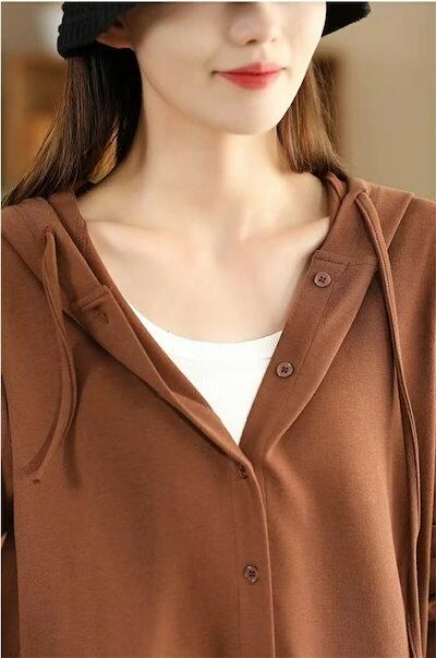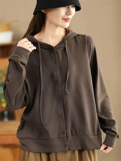 パーカー カーディガン レディース 春秋 トレーナー スウェット トップス ボタン フード付き 羽織り 長袖 無地 ジャケット ゆったり 着?せ 体型カバー レイヤード 重ね着 ビッグシルエット 通勤