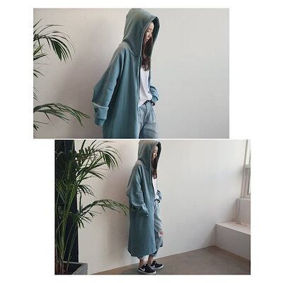 ロングパーカー レディース スウェットワンピース ロングコート 秋冬 ジャージ おしゃれ パーカー 長袖スウェット 裏起毛 フード付き ロング丈 BF風 韓国風 スポーツカジュアル スウェット コート