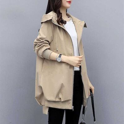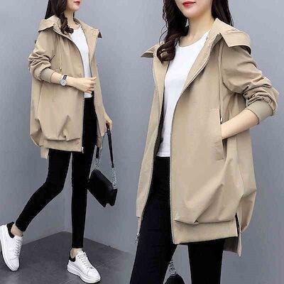 マウンテンパーカー マウンテンパーカー ブルゾン レディース 春秋 大きいサイズ トレンチコート ゆったり ジップアップ フード付き ウィンドブレーカー