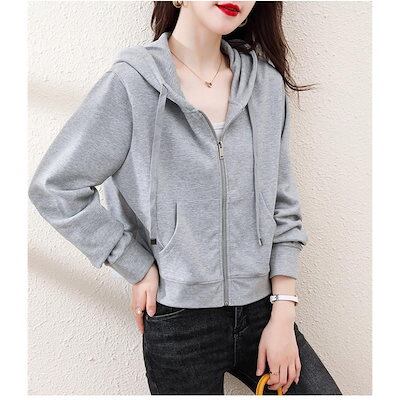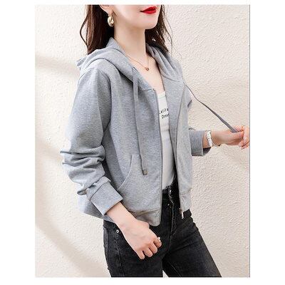 パーカー レディース 長袖ジャケット フード付き アウトドア 韓国風 アウター 無地 カジュアル 秋服 春秋 おしゃれ 着痩せ 短め 通勤