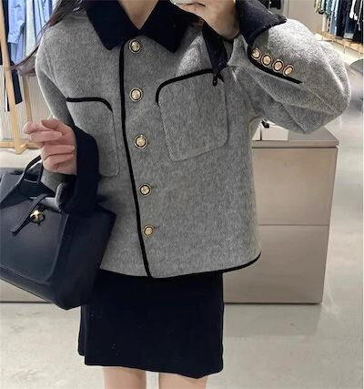 コート ジャケット レディース 厚手 ショート丈 ショートジャケット アウター 羽織り 長袖 秋 秋冬 パーカー ステンカラー ステンカラーコート 前開き ボタン 無地 ゆったり 体型カバー デザイン