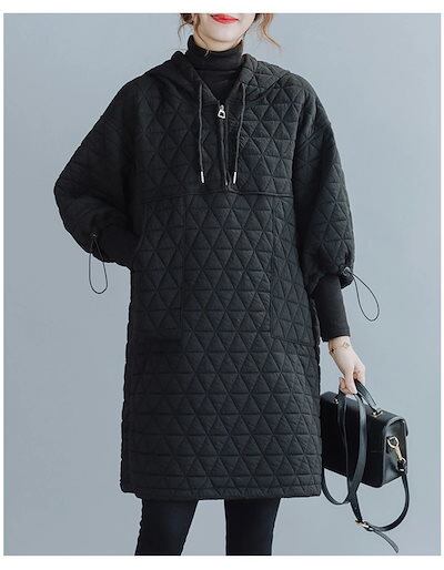 パーカー ワンピース レディース ロング チュニック パーカーワンピース 無地 フード付き 秋冬 キルティング ロングパーカー 大きいサイズ ゆったり 体型カバー プルオーバー ロング丈 トップス チ