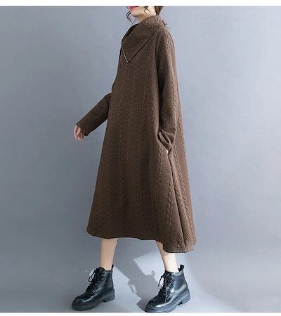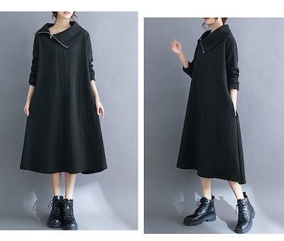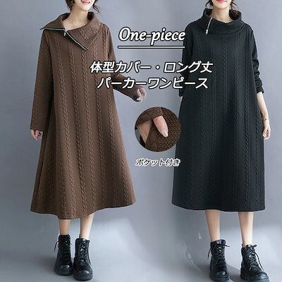 ワンピース チュニック ロングワンピース レディース 無地 マキシ丈 秋冬 長袖 ロングワンピ 厚手 暖かい ロング丈 大きいサイズ ゆったり パーカーワンピース ハイネック 体型カバー パーカー ポ