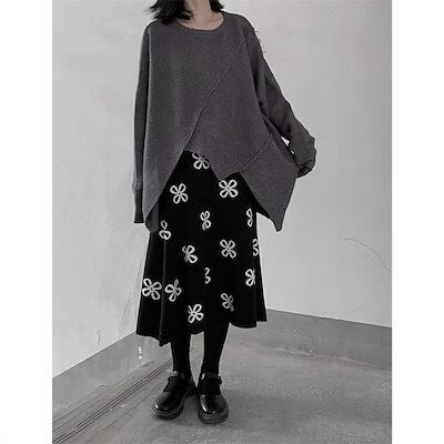 ニットセーター レディース 長袖 秋冬 ニット セーター ニットトップス 不規則裾 ニットパーカー ニットソー トップス 長袖トップス プルオーバー 厚手 無地 長そで カットソー ニットウェア フェ