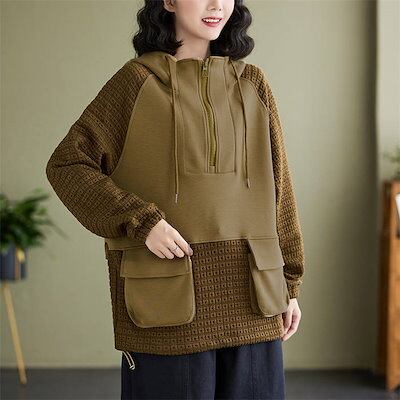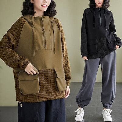 パーカー レディース ドッキング 秋 冬 コットン 無地 おしゃれ 春 長袖 トレーナー スウェット トップス プルオーバー レディースパーカー 長袖トップス レディーススウェット 春秋トップス 秋冬