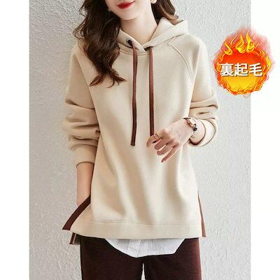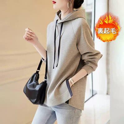 大人の魅力パーカーレディース裏起毛冬服フード付オーバー防寒対策ボア防風暖かいスウェットトップス長袖厚アウターあったか