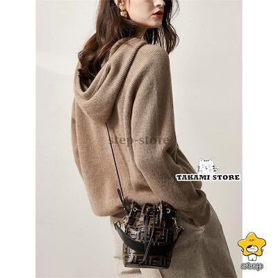 パーカーレディースニットニットパーカーセータープルオーバートップス無地ゆったり羽織りストレッチ防寒秋冬通勤おしゃれ上品