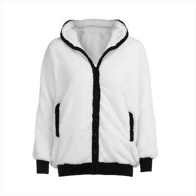 パーカー レディース ジャケット パンダ 耳つき バイカラー かわいい 秋 冬 ファー ボア ぬいぐるみ フード ジッパー アウター オーバーコート 通学 学生 キュー 大人可愛い 韓国 オルチャン