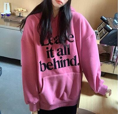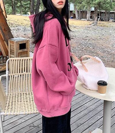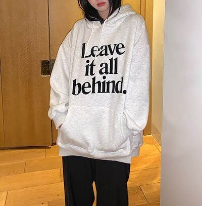 フード付き ロゴ スウェット パーカー レディース トップス プルオーバー 部屋着 丈長 長袖 ドロップショルダー フード ポケット ドロスト 厚手 かわいい 大人可愛い カジュアル おしゃれ こなれ