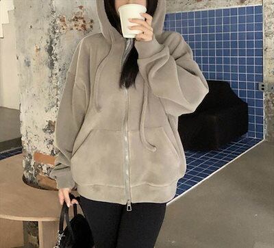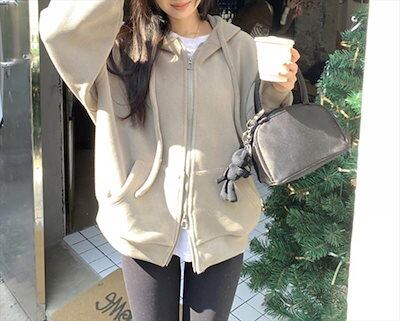 ベロア フード付き ジップアップ パーカー レディース トップス 羽織 丈長 長袖 ドロップショルダー フード ポケット 前開き ドロスト ベルベット かわいい 大人可愛い シンプル カジュアル おし