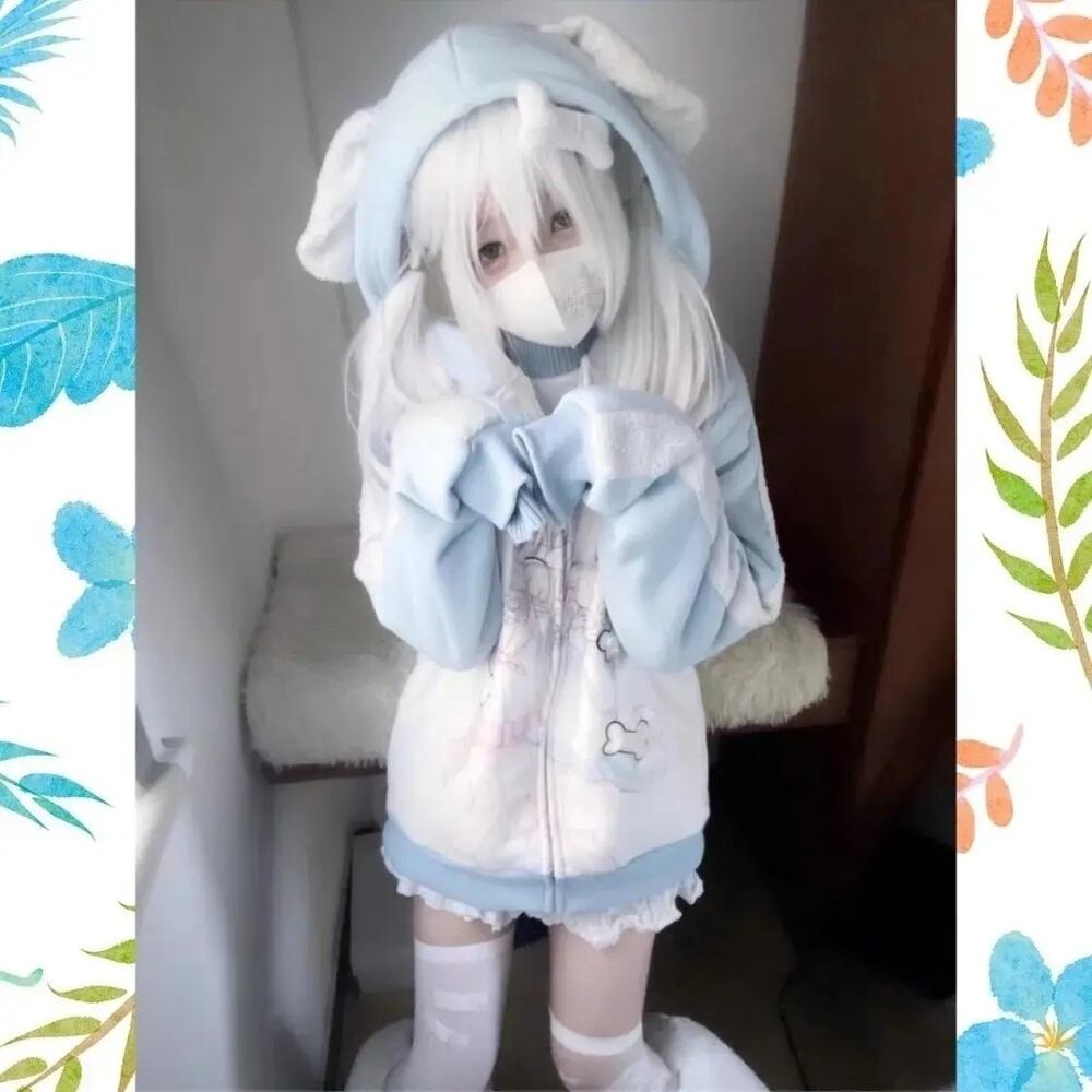 女の子のためのジッパー付き日本のフード付きパーカー、女性のためのカワイイルーズパーカー、黒と白のコート、トレンディでカワイイ、冬と秋 パーカー ジャージ y2k T240908200651_03