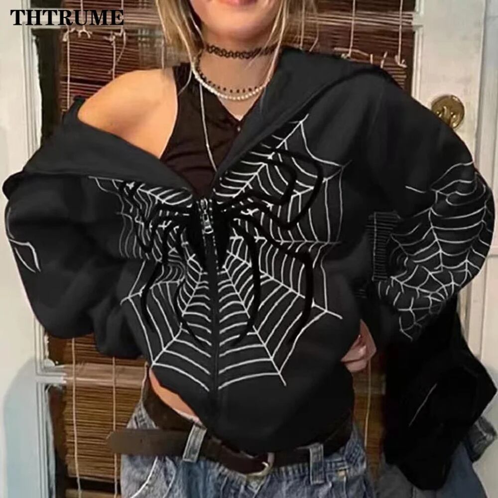 女性用の特大フード付きトップス,カジュアルなジップアップストリートウェア,黒のフード付きスウェットシャツ,グランジプリント,ストリートウェア,y2kスウェットシャツ,ファッション パーカー ジャージ y2k T240908200713_01