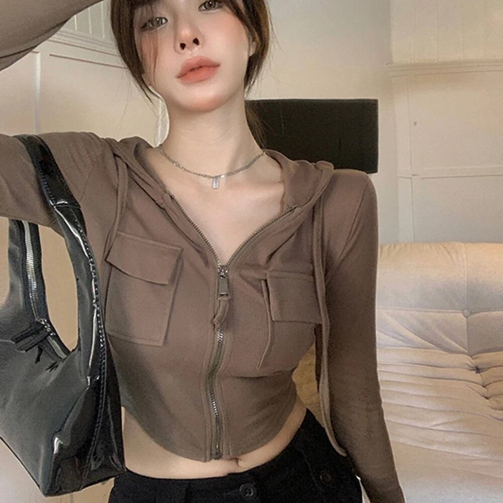 女性用Y2K-Zipアップクロップパーカー、長袖、巾着、スリムフィットスウェットシャツ、クロップドフードトップス、ピンク パーカー ジャージ y2k T240908200746_04