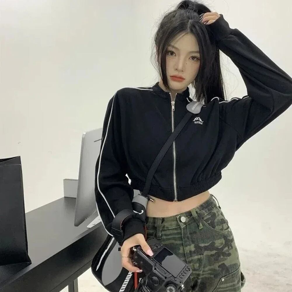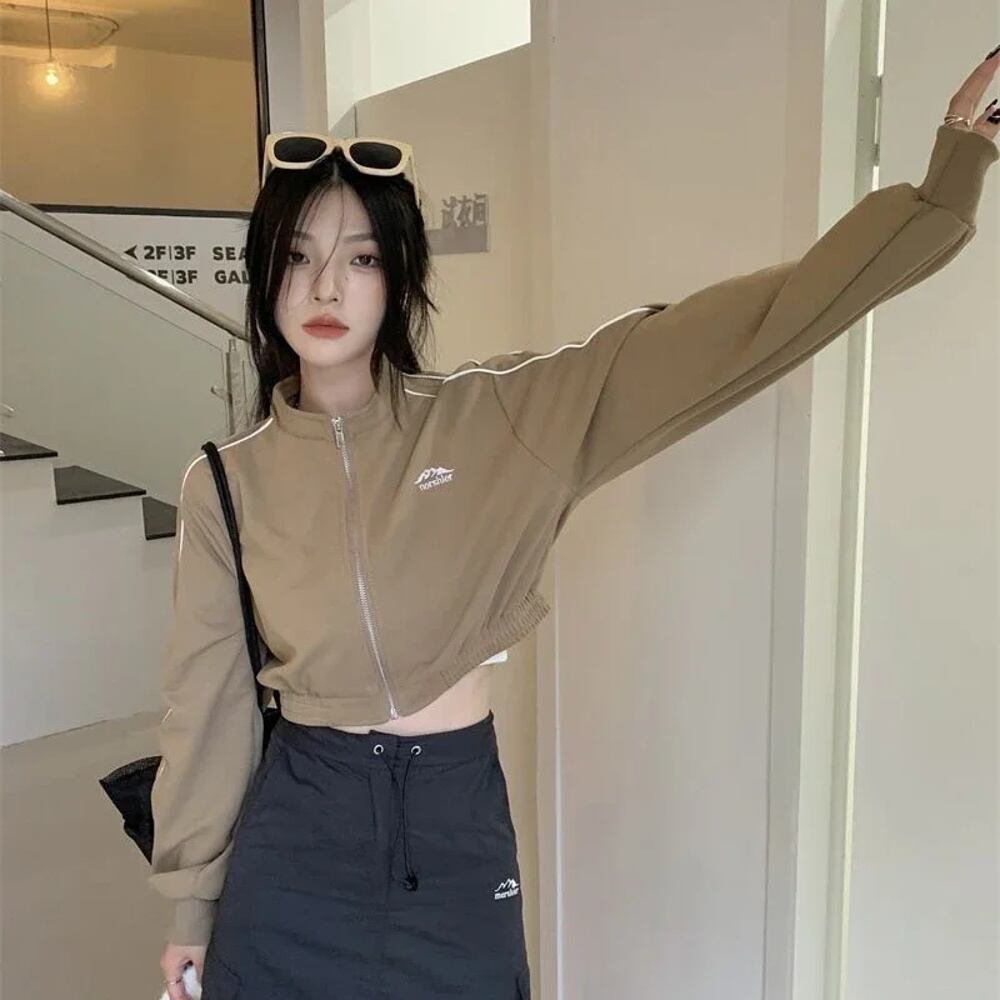 女性のヴィンテージクロップドジップアップスウェットシャツ,長袖のゆったりとしたカジュアルなアウター,韓国のファッション,女性のストリートウェア,春,秋,y2k パーカー ジャージ y2k T240908200806_01