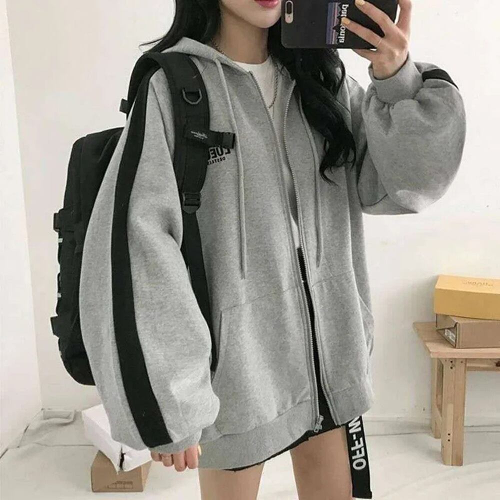 女性用特大スウェットシャツ,y2kドローストリング,フード付き,ジッパー,韓国語,カジュアル,ルーズフィット,ストリートウェア,秋 パーカー ジャージ y2k T240908200811_01