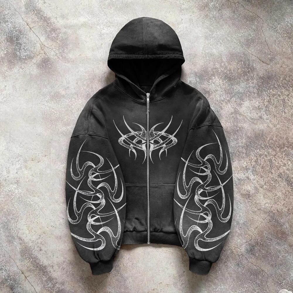 女性のためのウォッシュド不透明な骨格プリントフード付きジャケット、特大のパーカー、アメリカのヴィンテージジッパーカーディガン、y2kストリートウェアウェア服 パーカー ジャージ y2k T240908201352_06