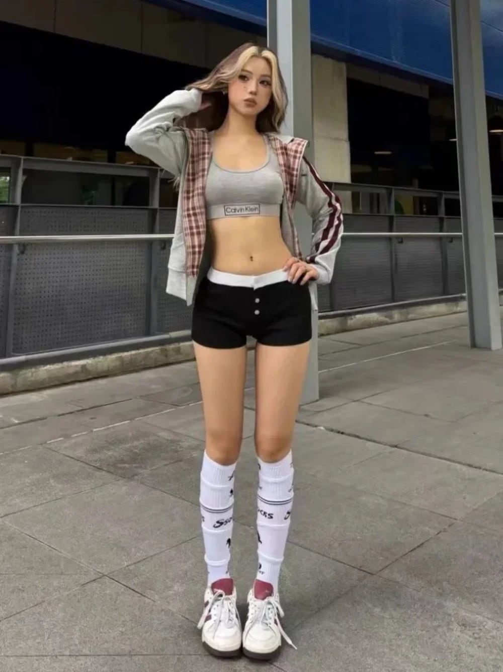 Deeptown-レディースチェック柄クロップフード付きスウェットシャツ、アメリカンヴィンテージジップアップパーカー、長袖トップ、y2kストリートウェア、原宿スタイルグランジ パーカー ジャージ y2k T240908201420_02