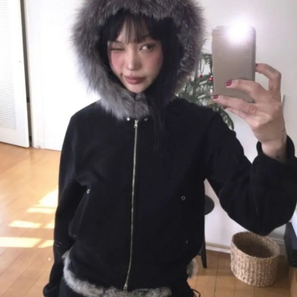 女性のためのアメリカンスタイルのふわふわパーカー、ルーズジッパートップス、y2kグランジスウェットシャツ、長袖、新しい春と秋 パーカー ジャージ y2k T240908201600_01