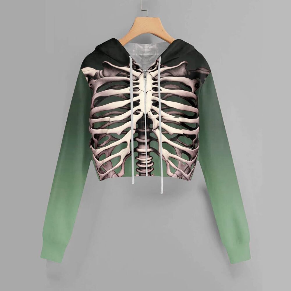 女性用ハロウィンスカルプリントクロップドパーカー、長袖トップス、フルジップフード付きスウェットシャツ、ゴシックストリートウェア、y2k服 パーカー ジャージ y2k T240908201714_04