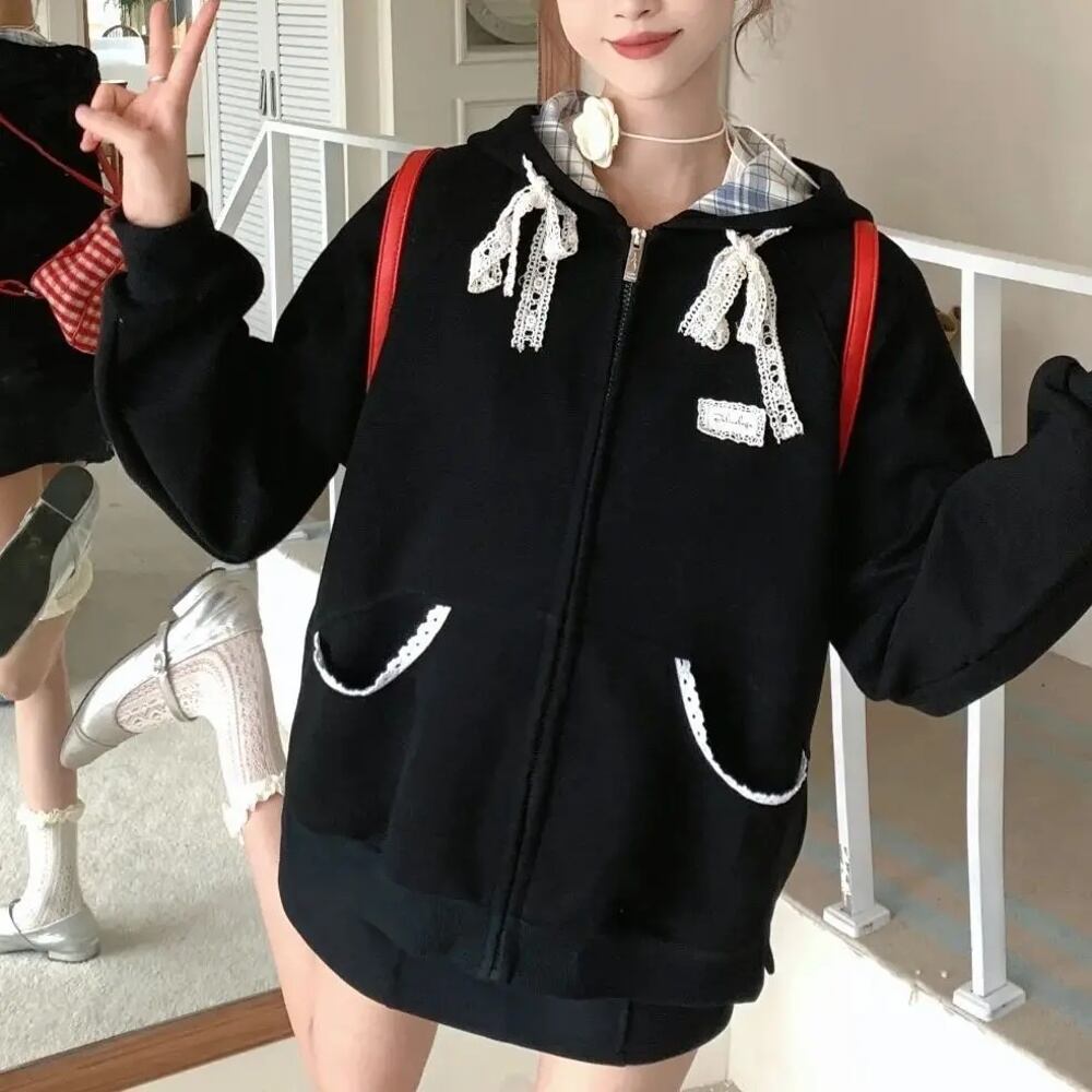女性用フード付きレーススウェットシャツ,ユニークなジッパー付きパーカー,女の子用k-popトップ,ヒップホップフーディーy2kストリートウェア,原宿,90年代ゴス,y2k パーカー ジャージ y2k T240908201836_02